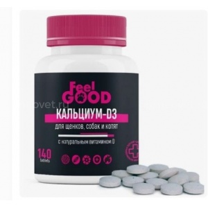 Кальциум-D3 FeelGOOD с натуральным витамином D для щенков, собак и котят, 140 таб.